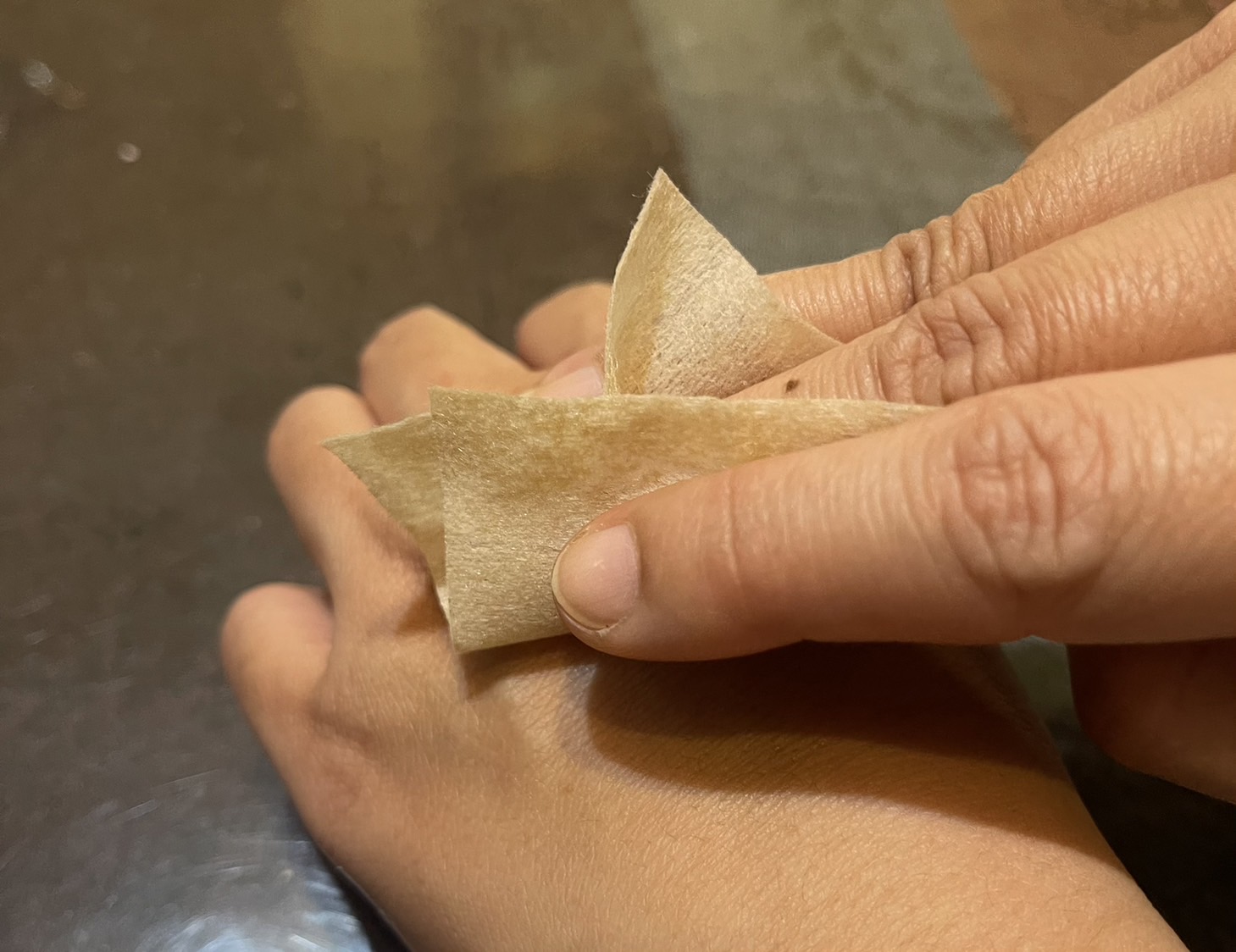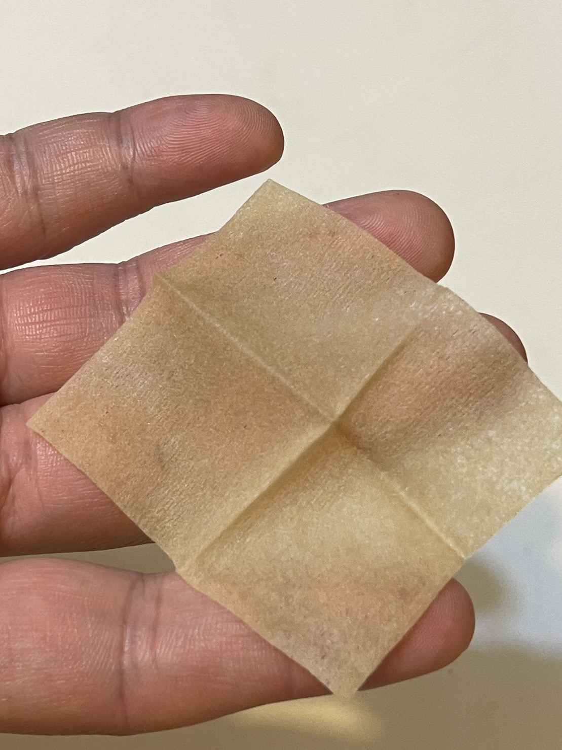 打開是小小一片的紙巾,聞起來沒有什麼味道,微微的濕潤感,在男生的重點部分簡單擦拭即可。
