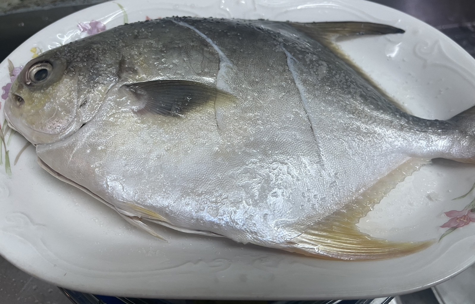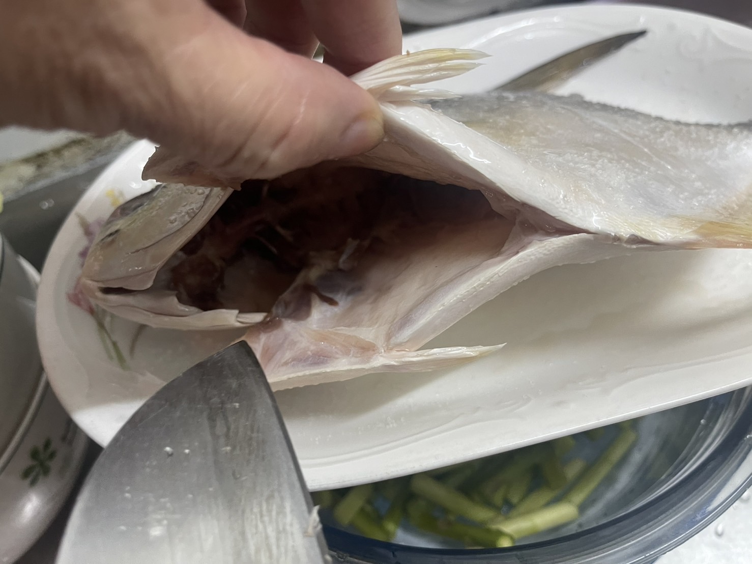 黃金鯧魚打開會有些許的魚鱗,可以用刀背輕輕的協刮除