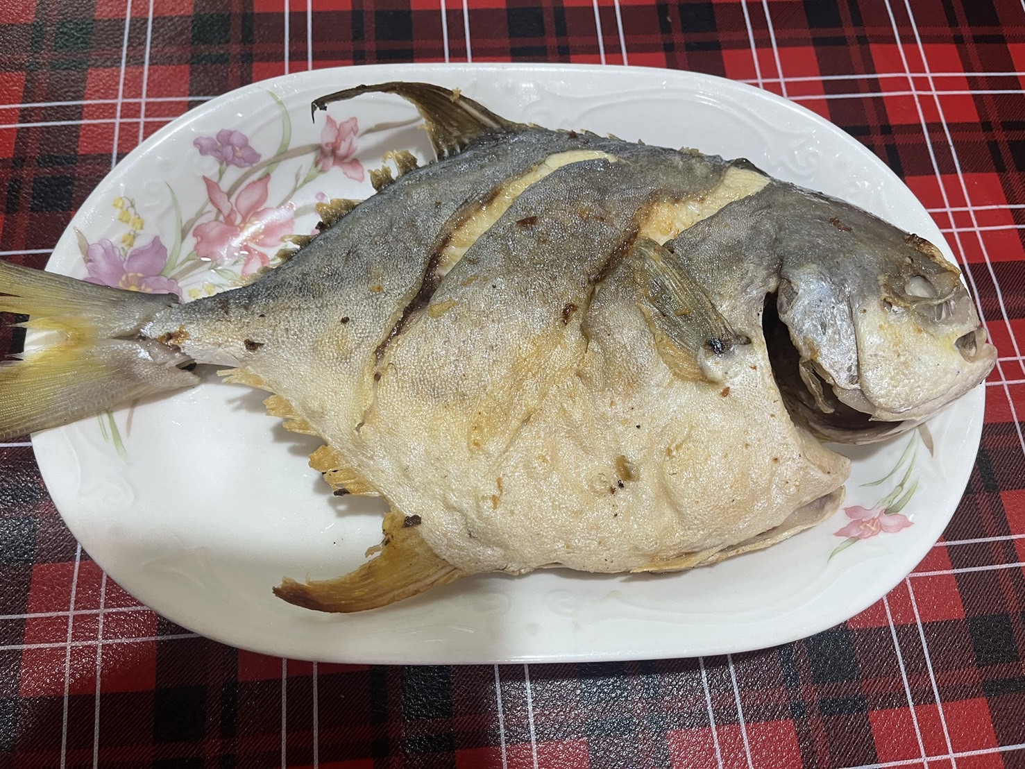 煎製完成的黃金鯧 肉質非常多汁 鮮嫩好好吃唷,連小朋友都很愛