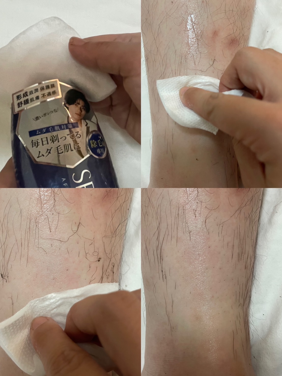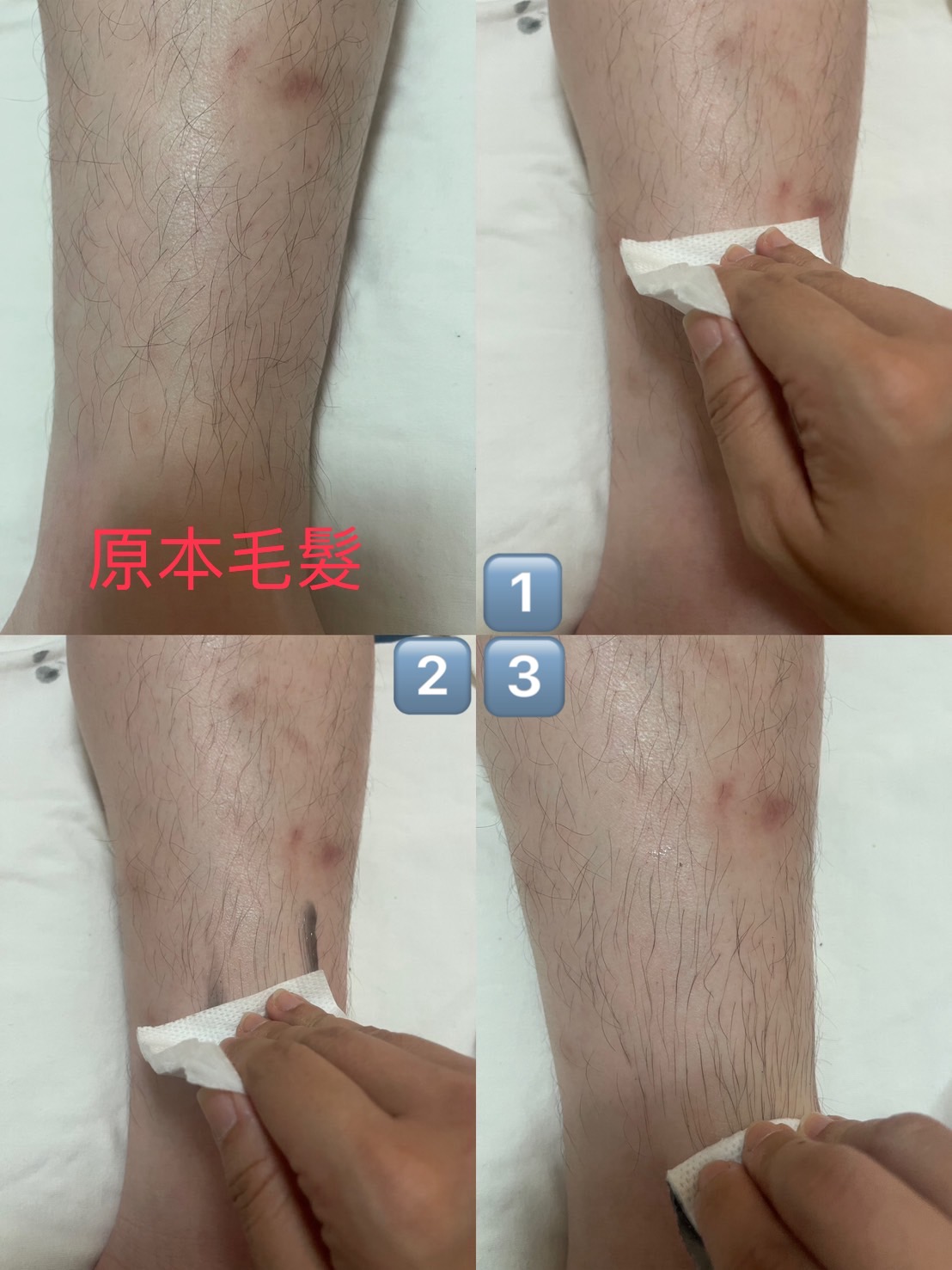 擦上深層修護軟毛液,舒緩剛剛的肌膚,擦拭中可以掉落的毛髮擦拭乾淨,好好保濕一下肌膚。