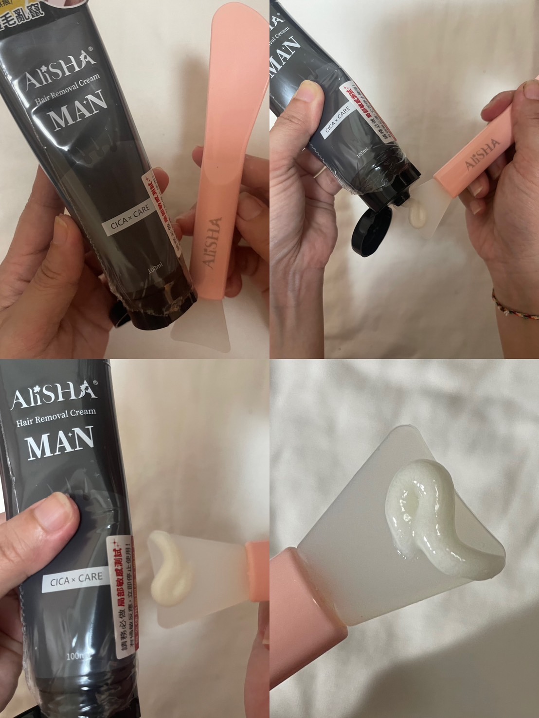 本身另一半是過敏性肌膚,對於淨毛膏的成份非常講究,認真找一下功課發現AliSHA 有完整使用介紹,成份有CICA積雪草萃取內含大量保濕因子,增加修護能力,添加植萃複合油、甘草酸二鉀,